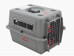 (1)应为专用航空小动物托运容器,必须由坚固材料制成且顶部固定,至少三面通风,小动物容器的门必须有锁闭装置,且为坚固的金属材质,箱门关闭后,应可有效的防止小动物自行打开门逃逸(见图-1)。